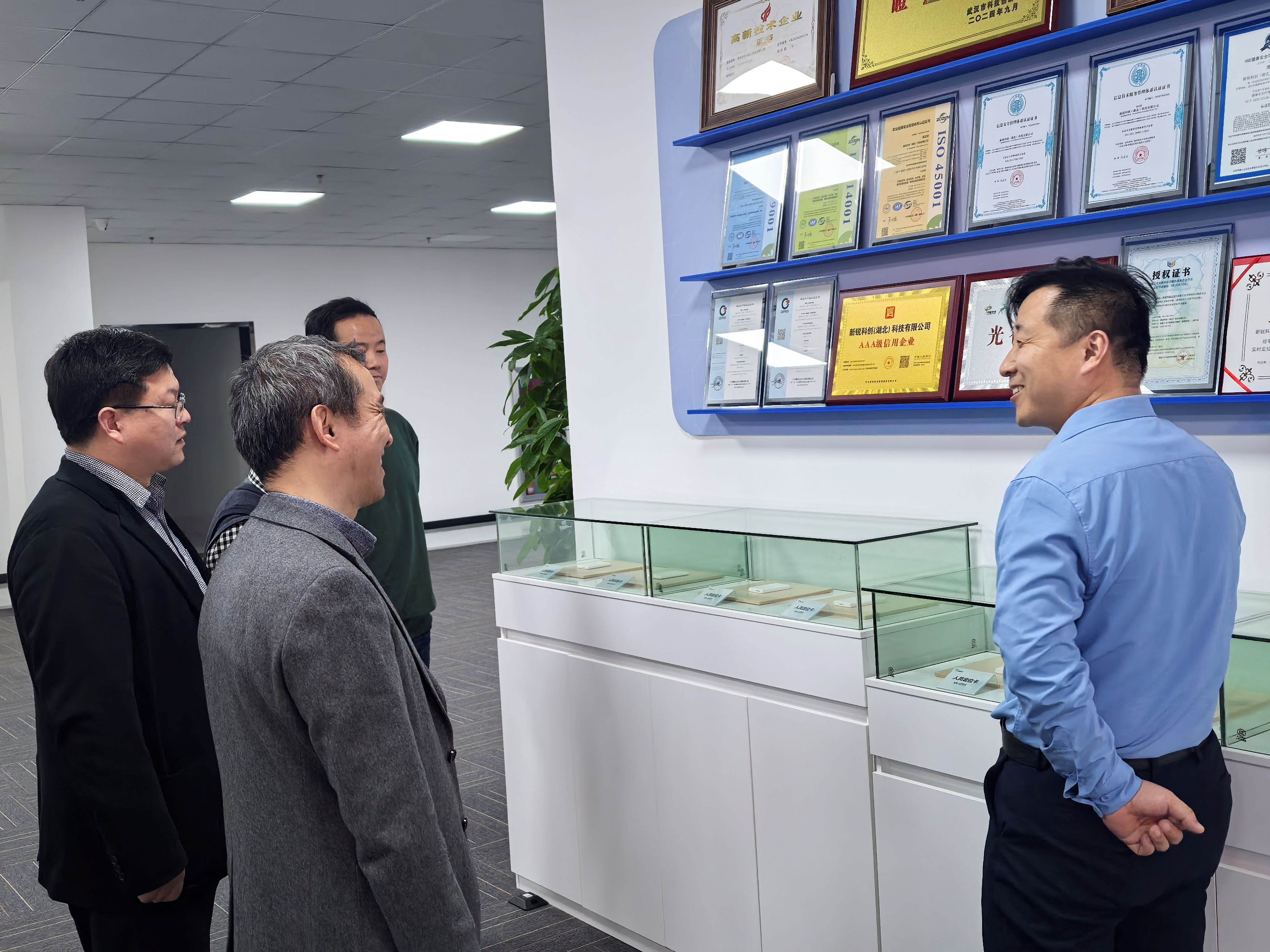 2025年3月2日,湖北工業大學申陽教授、周明剛教授帶隊蒞臨新銳科創(湖北)科技有限公司,新銳科創總經理苗總、黨支部書記張總熱情接待,雙方圍繞產學研方向展開深入探討。