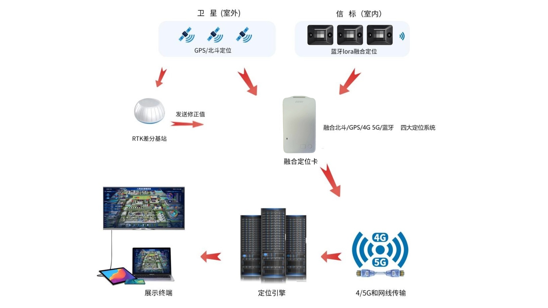 藍牙+LoRa+北斗RTK定位系統(tǒng)是一種室內(nèi)外高精度人員定位管理系統(tǒng),具有功耗低、部署簡單、實時性高、通信距離長、覆蓋范圍廣、定位精度高等特點。該系統(tǒng)在北斗定位的基礎(chǔ)上利用RTK差分定位技術(shù)提升室外定位精度,并通過融合LoRa無線通信技術(shù)與藍牙定位技術(shù),實現(xiàn)室內(nèi)實時高精度定位。該系統(tǒng)的通信距離較遠,可達數(shù)公里,適用于需要遠距離通信的場合。