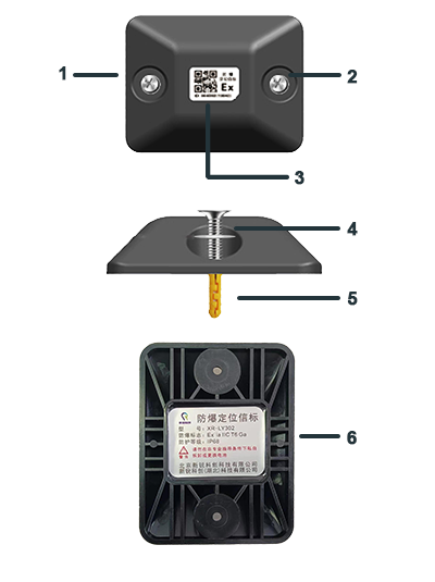 1. 定位孔 2.定位孔 3.編碼標簽 4.自攻螺絲 5.膨脹管 6.參數標簽